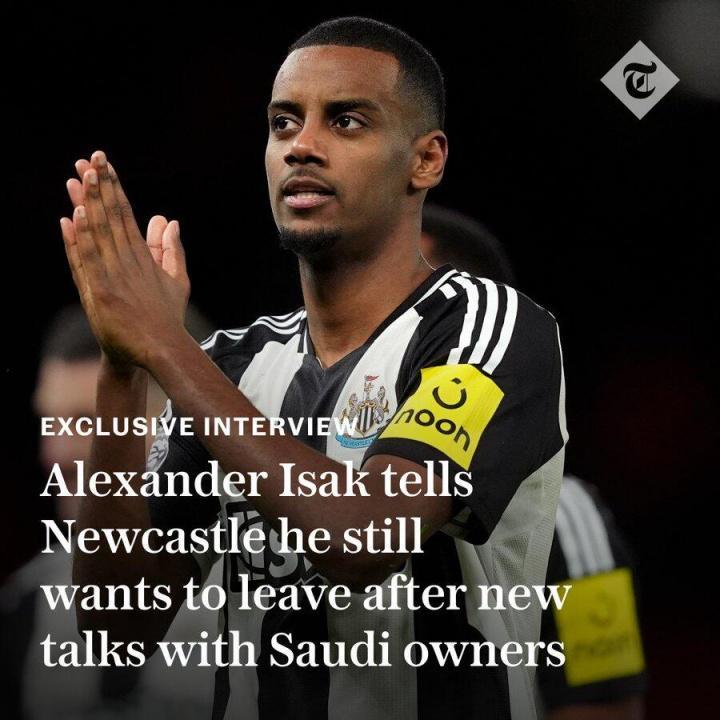 电讯报独家:伊萨克仍想离队&重申希望去利物浦,将继续罢训