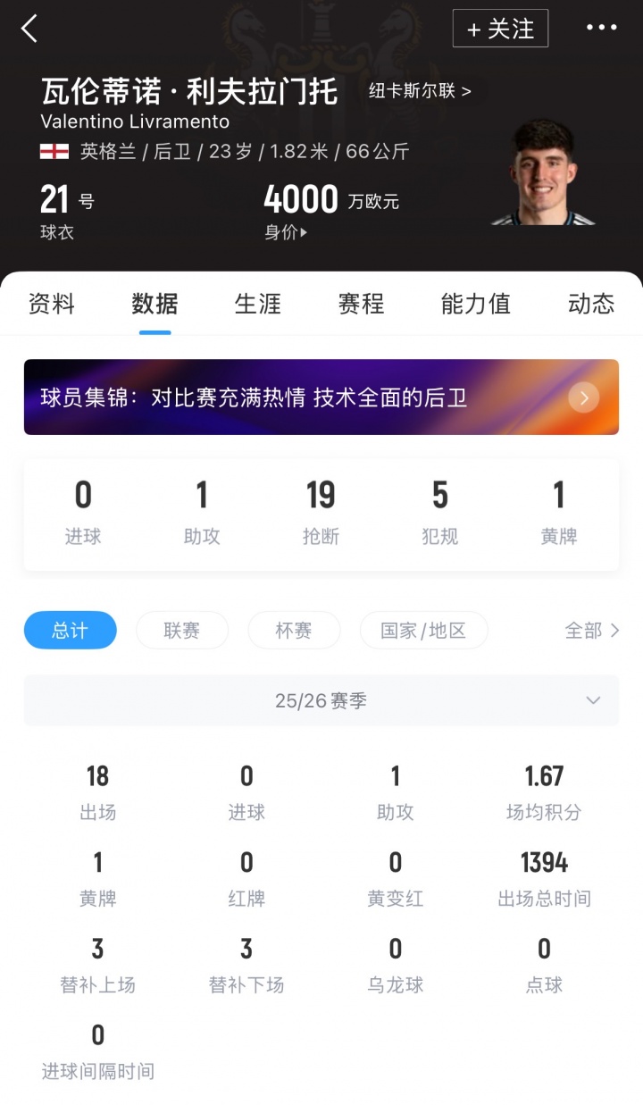 报道称,利夫拉门托预计将在今夏成为阿森纳与曼城争夺的焦点。在纽卡埃迪·豪眼中,利夫拉门托是球队重要一员,他们也不会轻易放球员离开。